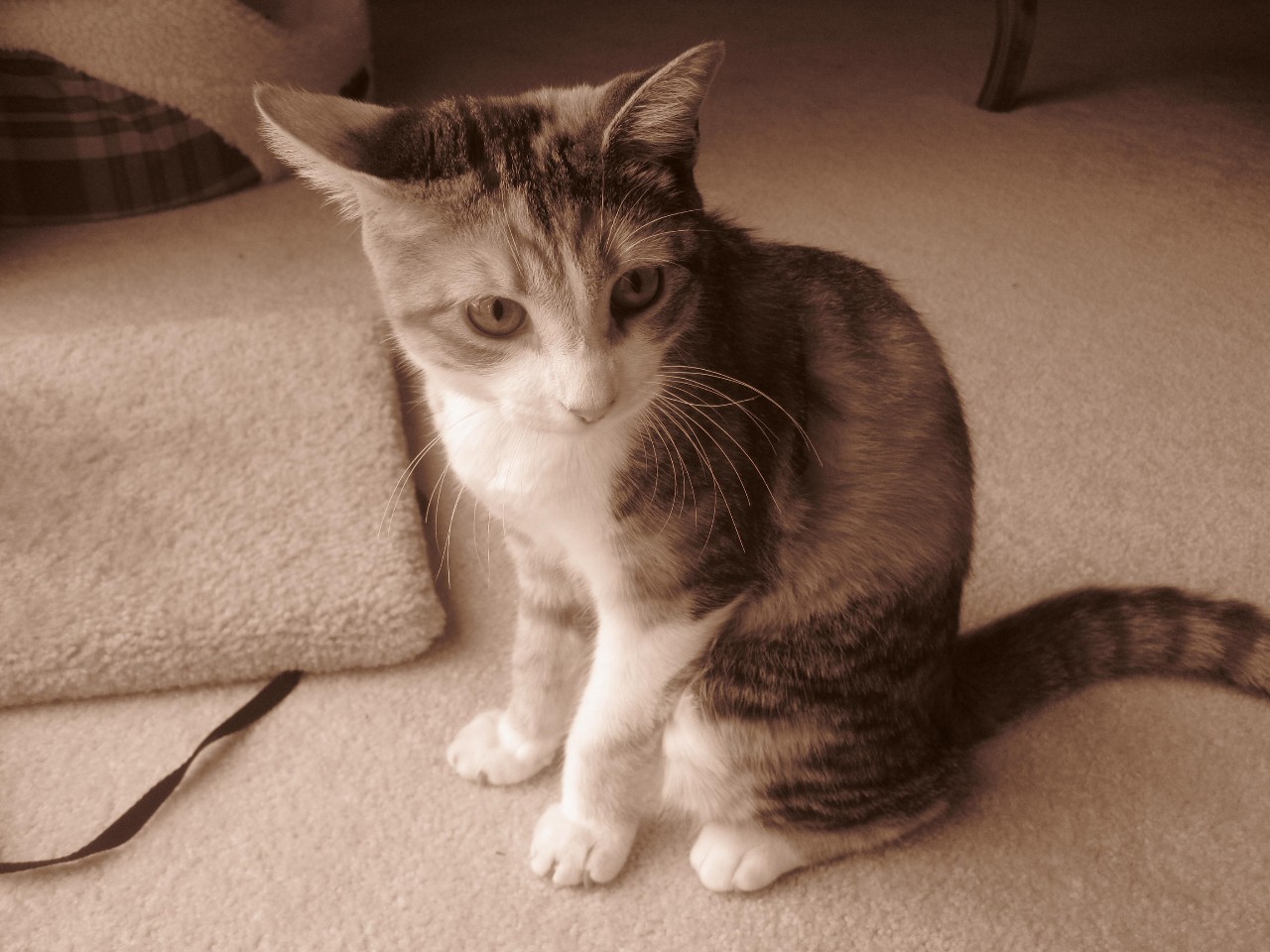 Happy half-birthday KIWI! Today Kiwi is six months old! HALF A YEAR! (she still seems like my new baby kitten to me). I find it wierd to think that in just another six months, she'll be a year old.